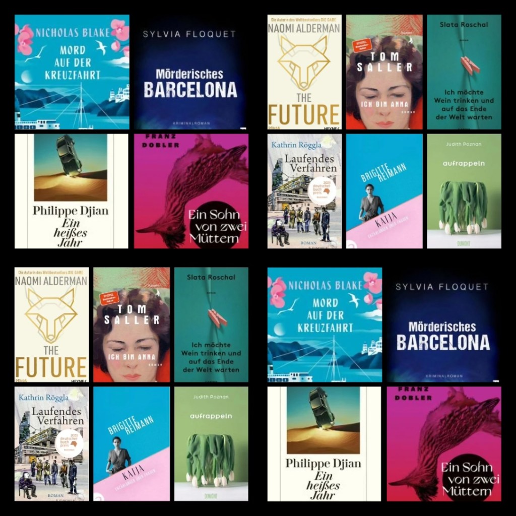 Mein Lesemonat Juli 2024. Ein gut gefüllter Lesemonat. Krimis, Dystopien und Literatur. Abwechslungsreich und schön. 3 5-Sterne-Bücher gab es zu bewundern, diese waren „Katja“ von Brigitte Reimann, feministisches Denken in den 50ern, 60ern und den frühen 70ern, „Laufendes Verfahren“ von Katrin Röggla, sarkastische Blicke auf den NSU-Prozess und der spannende Krimi „Mord auf der Kreuzfahrt“ von Nicholas Blake. 4 Sterne konnte ich an 5 Bücher vergeben, „Aufrappeln“ von Judith Poznan, warmherzige Blicke auf das Leben, „Ich bin Anna“ von Tom Saller, Blicke auf Anna Freud, „The Future“ von Naomi Alderman, dystopische Szenarien, „Ein heißes Jahr“ von Philippe Djian, weitere dystopische Szenarien und der Krimi „Mörderisches Barcelona“ von Sylvia Floquet. Nicht so überzeugt haben mich „Ein Sohn von zwei Müttern“ von Franz Dobler, etwas wirre Gedanken zum Thema Adoption, 3 Sterna dafür und „Ich möchte Wein trinken und auf das Ende der Welt warten“ von Slata Roschal, Blicke auf das Leben aus den Augen einer mich triggernden Frau, 2 Sterne dafür.